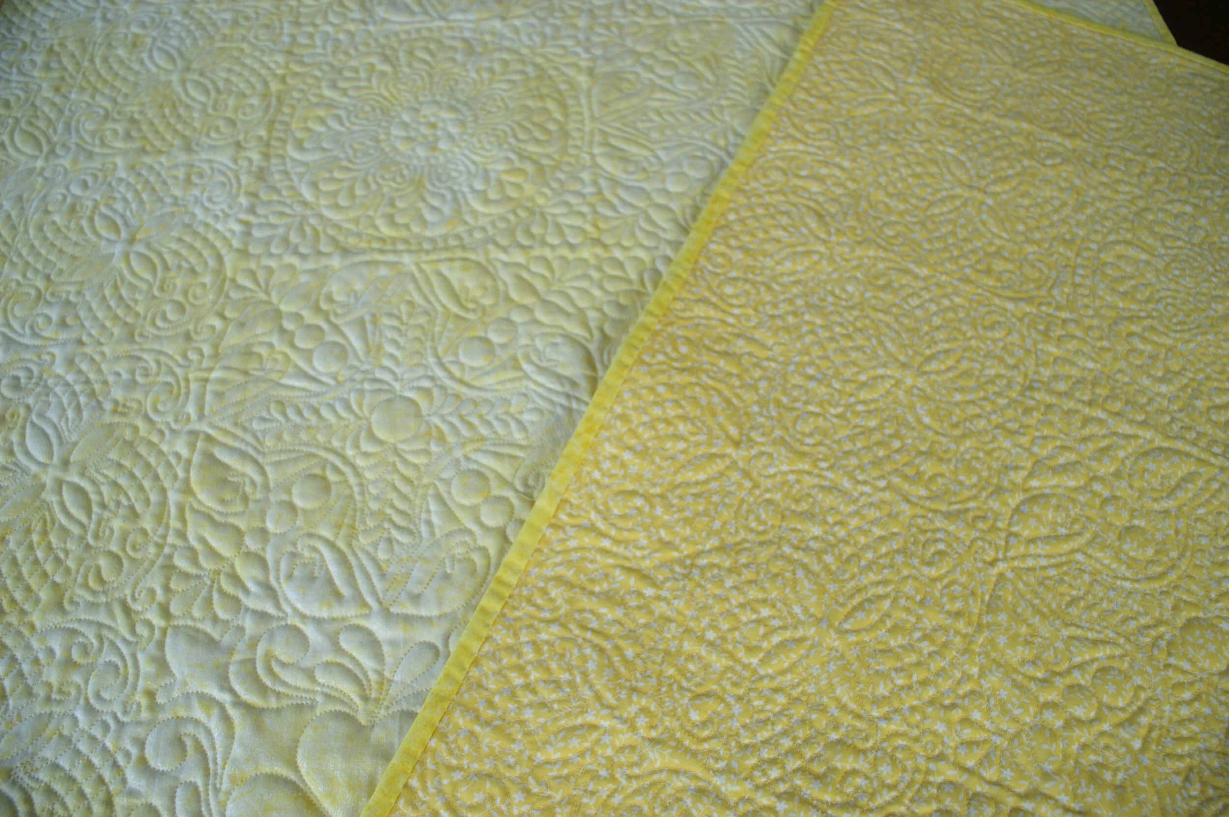 This was a practice piece. I found a beautiful piece of fabric and decided to practice designing by individual squares rather than edge-to-edge. It took a while lay it all out but it was worth it. So amazed at my Innova can accomplish.